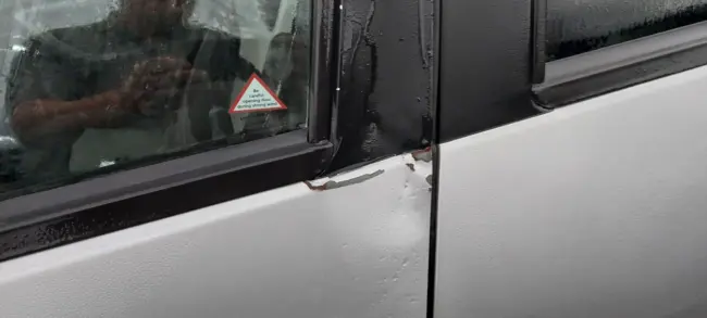 Bíllinn er með beyglur hér og þar, en alveg hundgóður vagn til aksturs.